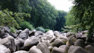 Von weitem schon sind die rundlichen Felsen im Wald sichtbar – das Felsenmeer im Lautertal. Kristallines Gestein wurde zunächst durch Wollsackverwitterung in die gerundete Form gebracht. Ein Transport in Hanglage durch Frost-Tau-Prozesse sorgte für die heutige Form der Blockhalde. Schon die Römer haben die Steine genutzt und bearbeitet.
